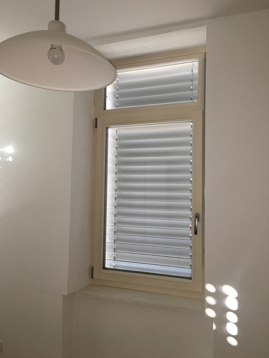 Zgradbe s postavitvijo slemena vzhod-zahod imajo na južni pročelni strani več odprtin, saj toplo južno sonce ogreva prostore v času jesen-zima-pomlad. Poleti pa je potrebno zaradi premočnega sončnega sevanja te odprtine z zunanje strani zasenčiti s senčili, kot so rolete ali zunanje žaluzije. Stranki iz kočevja smo svetovali ravno tako senčenje na južni strani, na severi strani pa samo senčenje z notranjimi žaluzijami, ki poskrbijo, da neželjeni pogledi ne sežejo v intimo doma.